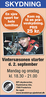 Bredstrup Pjedsted skytten Rene Kristiansen kan det næste år kalde sig for den store mester inden for DGI skydning på 15m, Rene vandt næsten alt hvad vindes kunne 2 individuelle mesterskaber på luftriffel og salonriffel. 1. foreningsholds mesterskab på luft og 2 mesterskaber på DGIlandsdelsholdet luft og cal.22. BPI havde 16 skytter med på de 2 landsdelshold som vandt de 2 kunkurrencer.